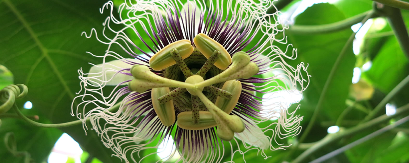そんな小笠原の大自然のなかで栽培されているパッションフルーツ。もとは南米原産の熱帯果樹(トロピカルフルーツ)で、その花の形が十字架にかけられたイエスキリストの姿に似ていることから「パッション(=受難)」と名づけられ、和名では、花を時計の文字盤に見立てて「クダモノトケイソウ(果物時計草)」と呼ばれています。