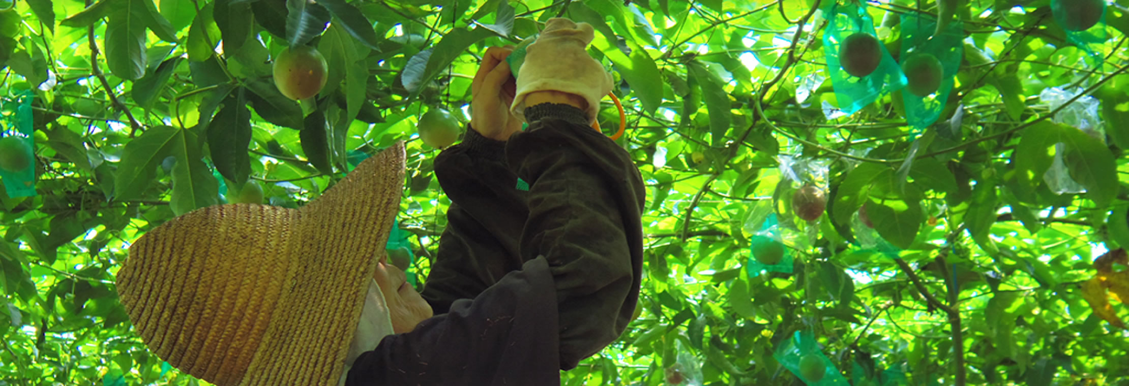 また、完熟した果実は自然に落下してしまうため、衝撃によって傷つかないよう、すべてに落下・キズ防止の袋をかぶせます。そして完熟の時を迎えると、袋の中に実が落ちたものからひとつひとつ収穫していきます。小笠原産パッションフルーツは、生産者の方が丹精込めて育てあげる、情熱の果実なのです。