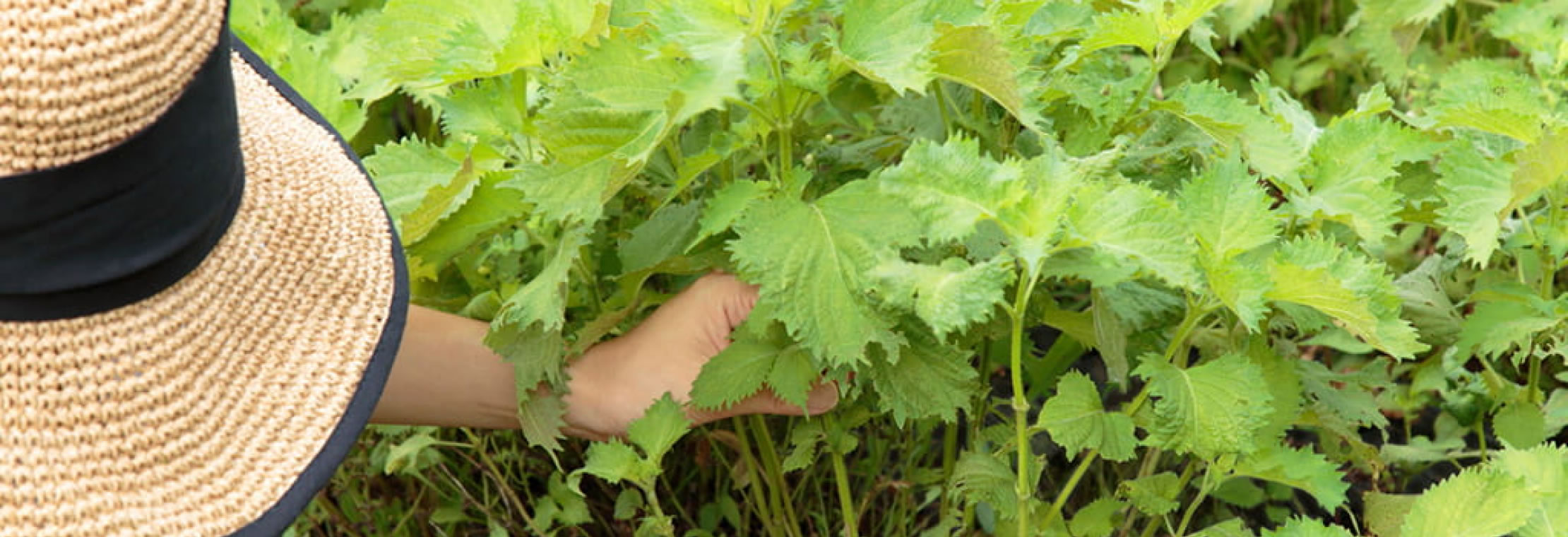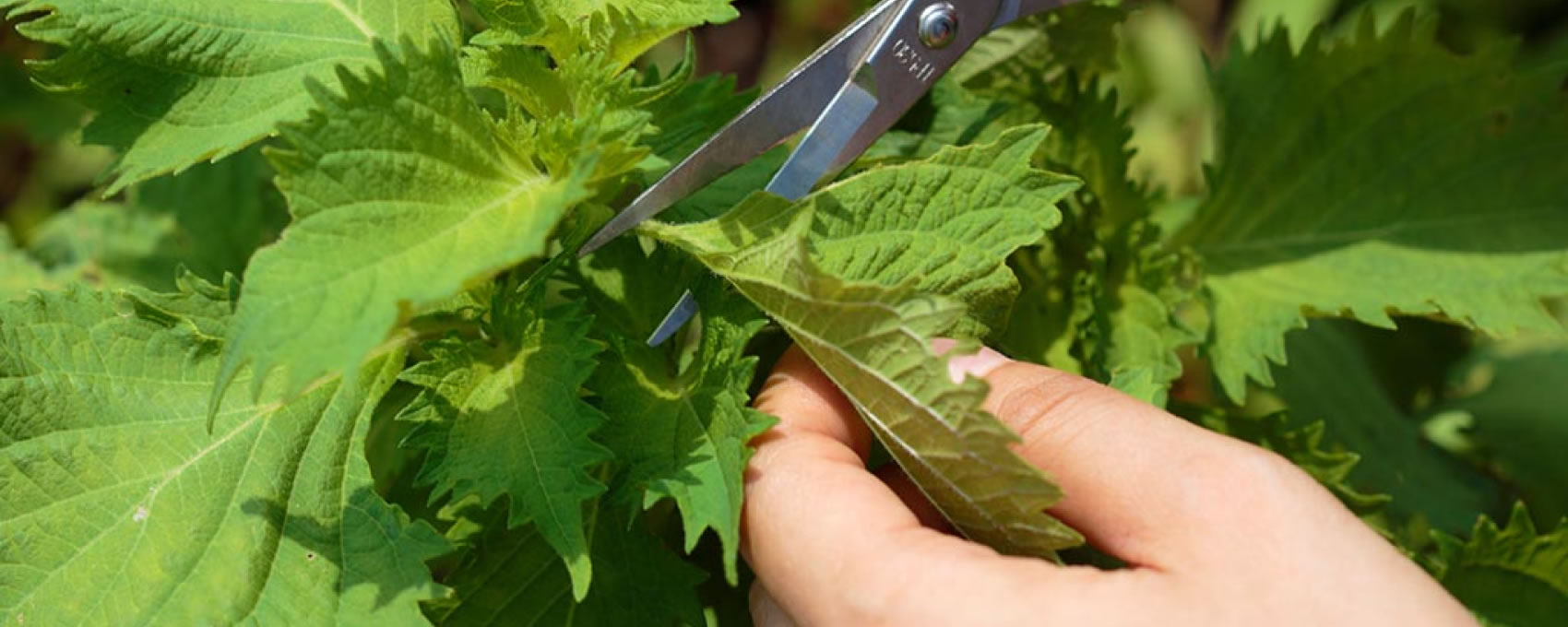 豊かな自然のなかで、たくましく、大きく育ったアオジソの葉を、夏から秋にかけて丁寧に収穫しています。