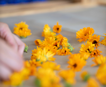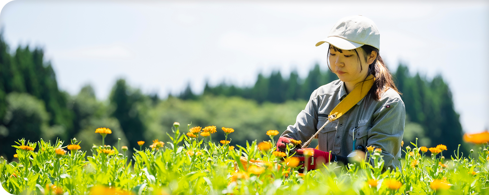 イグニスのトウキンセンカは、世界自然遺産「白神山地」のふもとにある自社研究所の畑で有機栽培。豊かな自然環境に囲まれた土地で、植物本来の個性を大切にしながら丁寧に育てられています。